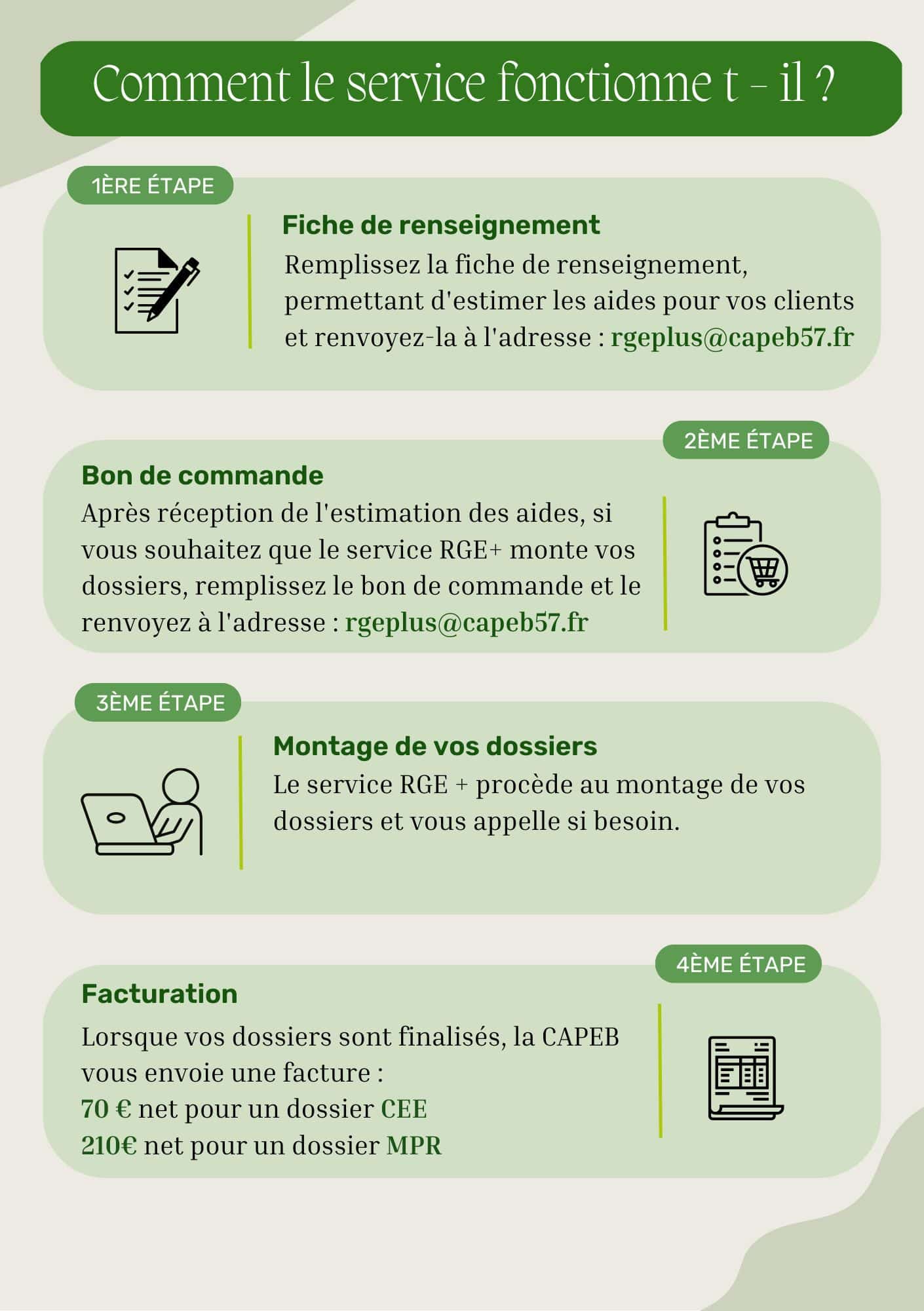Accueil / Actualités / RGE Plus : le nouveau service proposé par votre CAPEB ! La vie de la CAPEB RGE Plus : le nouveau service proposé par votre CAPEB ! Publié le 28 septembre 2023 La complexité administrative du montage des dossiers d'aides CEE et MPR n'est plus un secret pour personne. Afin de vous décharger et de décharger vos clients de cette tâche, la CAPEB Moselle a mis en place un nouveau service qui vous permet de : ⏱ Gagner du temps dans la mesure où il effectue toutes les demandes d'aides de A à Z. De bénéficier d'un service clé en main de l'estimation du montant des aides à la constitution du dossier. D'échanger avec un interlocuteur en cas d'interrogations. Surtout n’hésitez pas à contacter Ophélie qui coordonne ce nouveau service au 03. 87. 16. 24. 85 ☎ D'autres actualités Voir toutes les actualités Juridique Réservé aux adhérents MaPrimeRénov’ relancée en 2026 avec un passage obligatoire par France Rénov’ pour les rénovations d’ampleur Publié le 11 février 2026 Juridique Réservé aux adhérents PAC air/air : Bientôt une TVA à 5,5 % Publié le 11 février 2026 Non classée 🚨 Trésorerie fragile : n’attendez pas pour réagir, nous avons des solutions pour vous accompagner Publié le 11 février 2026
